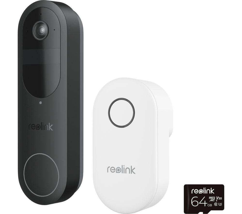 REOLINK D340B 2K Smart Video Doorbell, Chime & 64 GB Memory Card - Black & White, White,Black