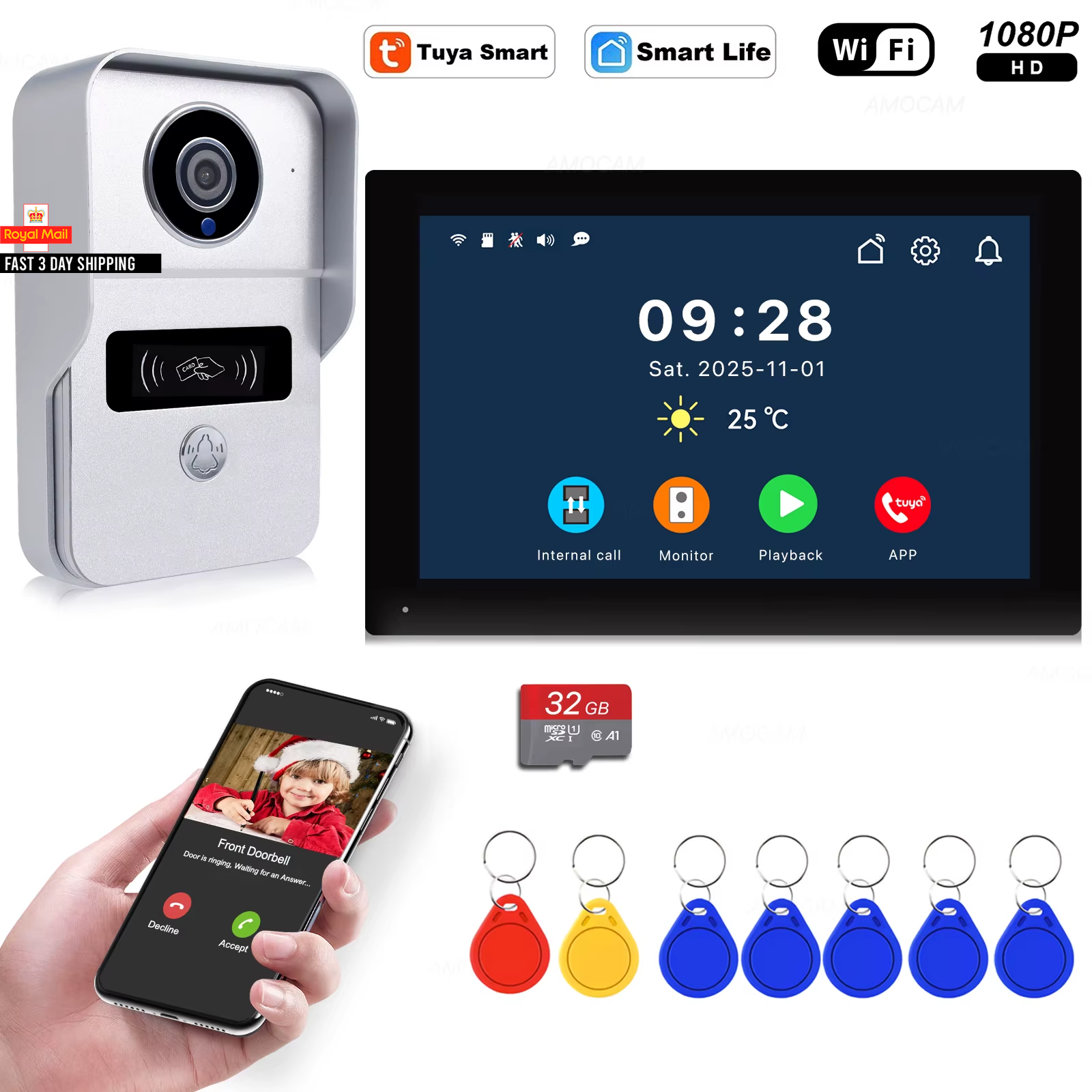UK Plug 7in WiFi Video Doorbell Intercom System Smart 1 For 1 Visual Phone R NEW
