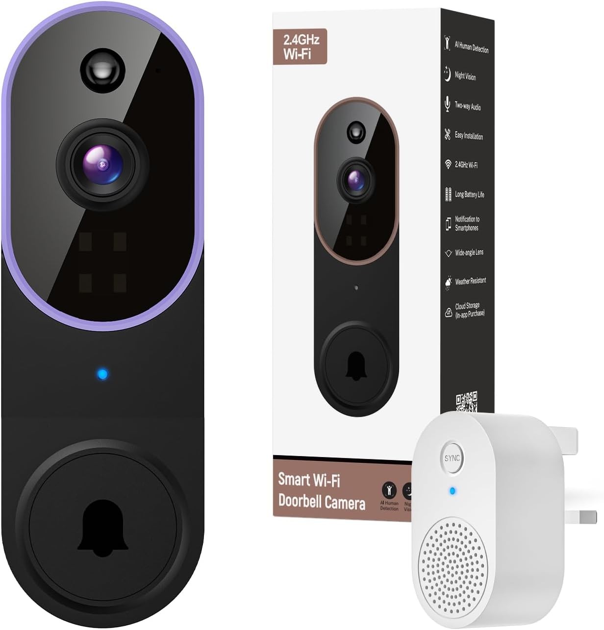 GlowPop 1080p Wireless Doorbell Camera with Receiver, Smart AI Human Detection, Two Way Talk, Live View, Night Vision, 2.4G WiFi Only, Cloud Storage, Indoor Outdoor Surveillance