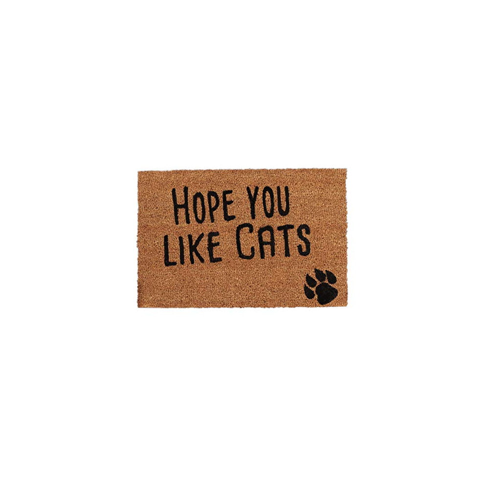 Doormat with Slogan, Hope You Like Cats, Animal Theme, Coconut Fibres, Outdoors, Indoors, Welcome Mat 40x60cm, Natural, Coir, 1.5 x 60 x 40 cm