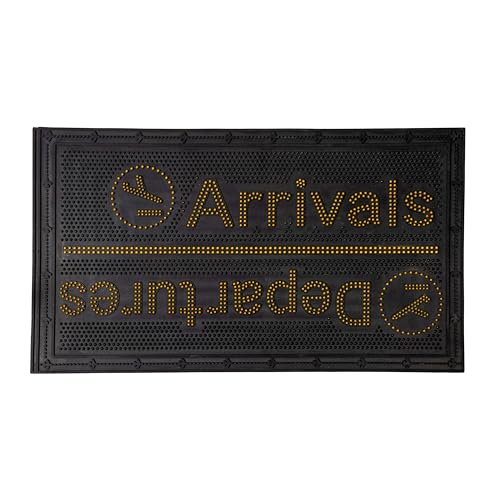 FISURA - Original Arrivals/Departures Black and Yellow Door Mat for Outdoors Entrance Door Mat with Spikes Rubber Door Mat with Message Doormat 70 x 40 cm