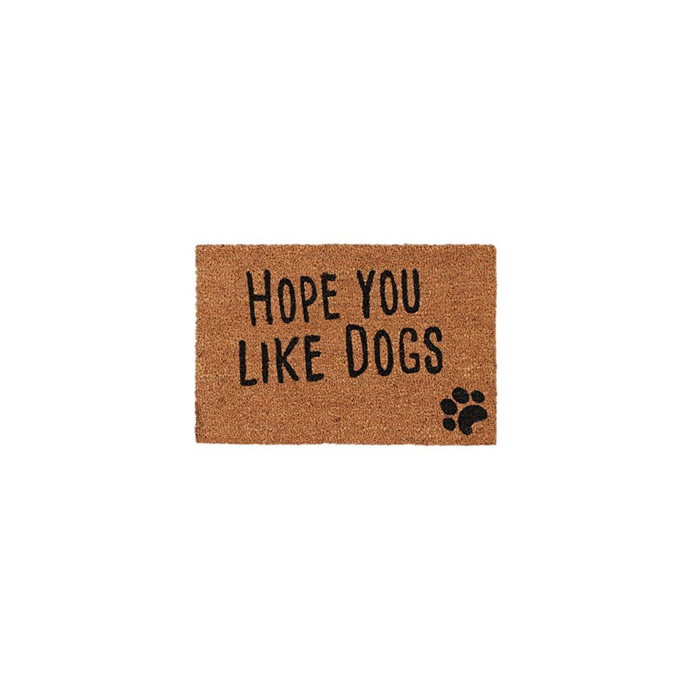 Relaxdays Doormat with Slogan, Hope You Like Dogs, Animal Theme, Coconut Fibres, Outdoors, Indoors, Welcome Mat 40x60cm, Natural, Coir, Standard
