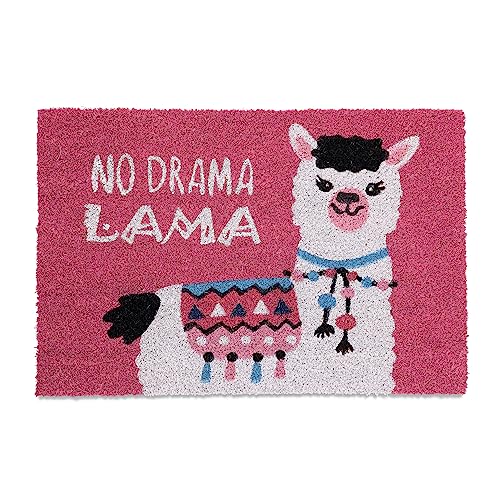 Relaxdays Coir Doormat, Llama Print, 'No Drama Lama', 40 x 60 cm, Non-Slip Welcome Mat, Indoors & Outdoors, Pink/White