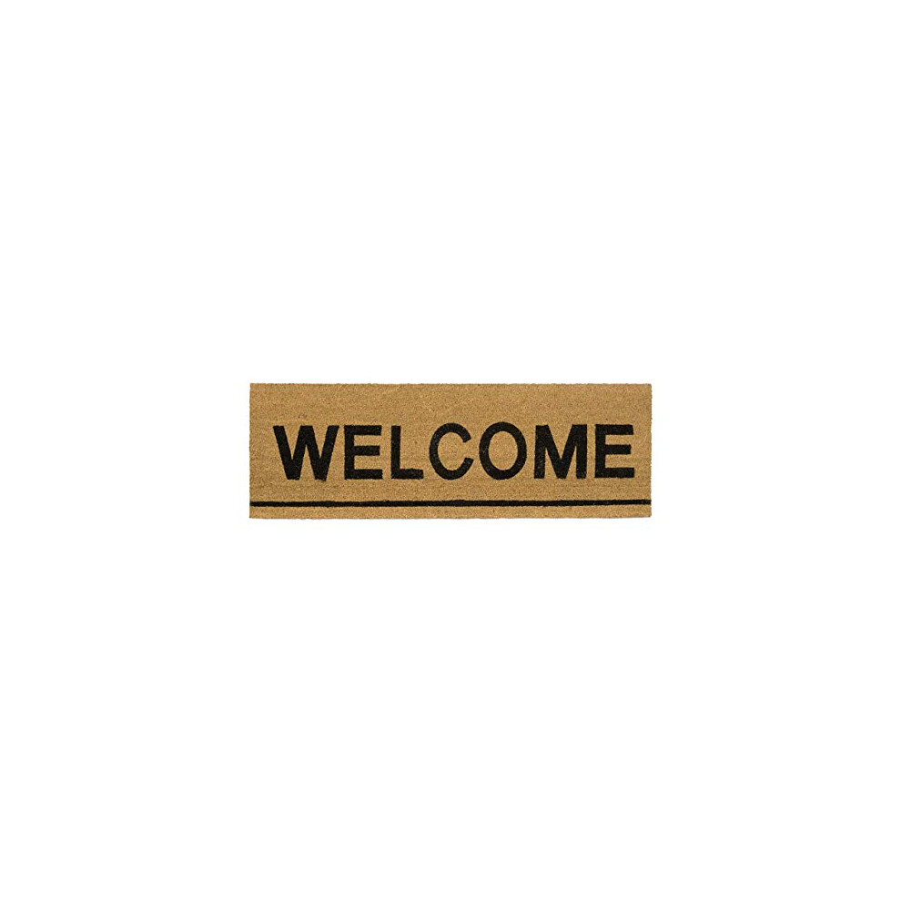 Extra-Long Coir Doormat 40 x 120 cm "WELCOME" Mat for Wide Doors Indoors and Outdoors, Anti-Slip Rubber Underside Floor Mat, Natural