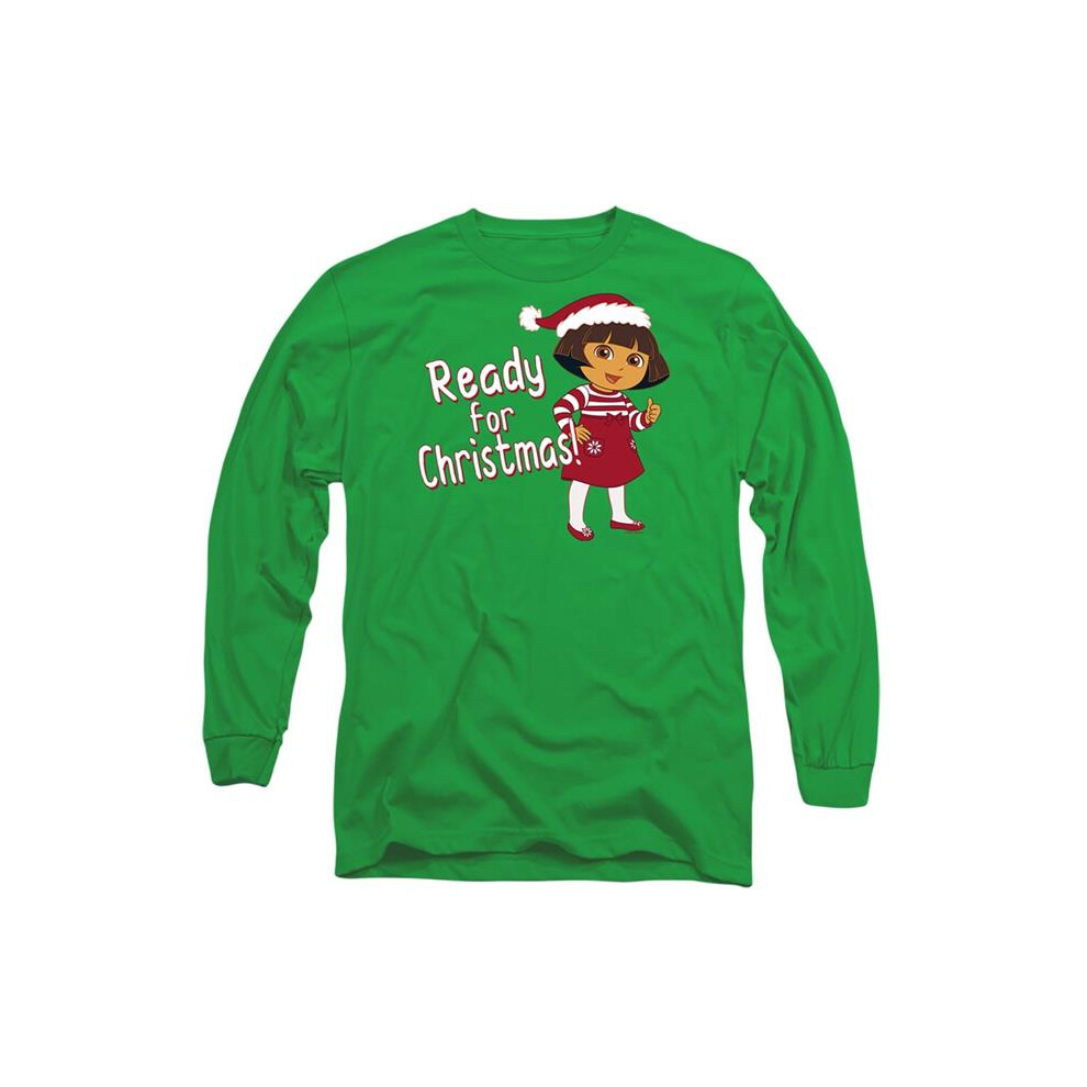 Trevco Sportswear NICK10212-AL-2 Dora The Explorer Dora Ready for The Holidays Adult Long Sleeve T-Shirt, Kelly Green - Medium