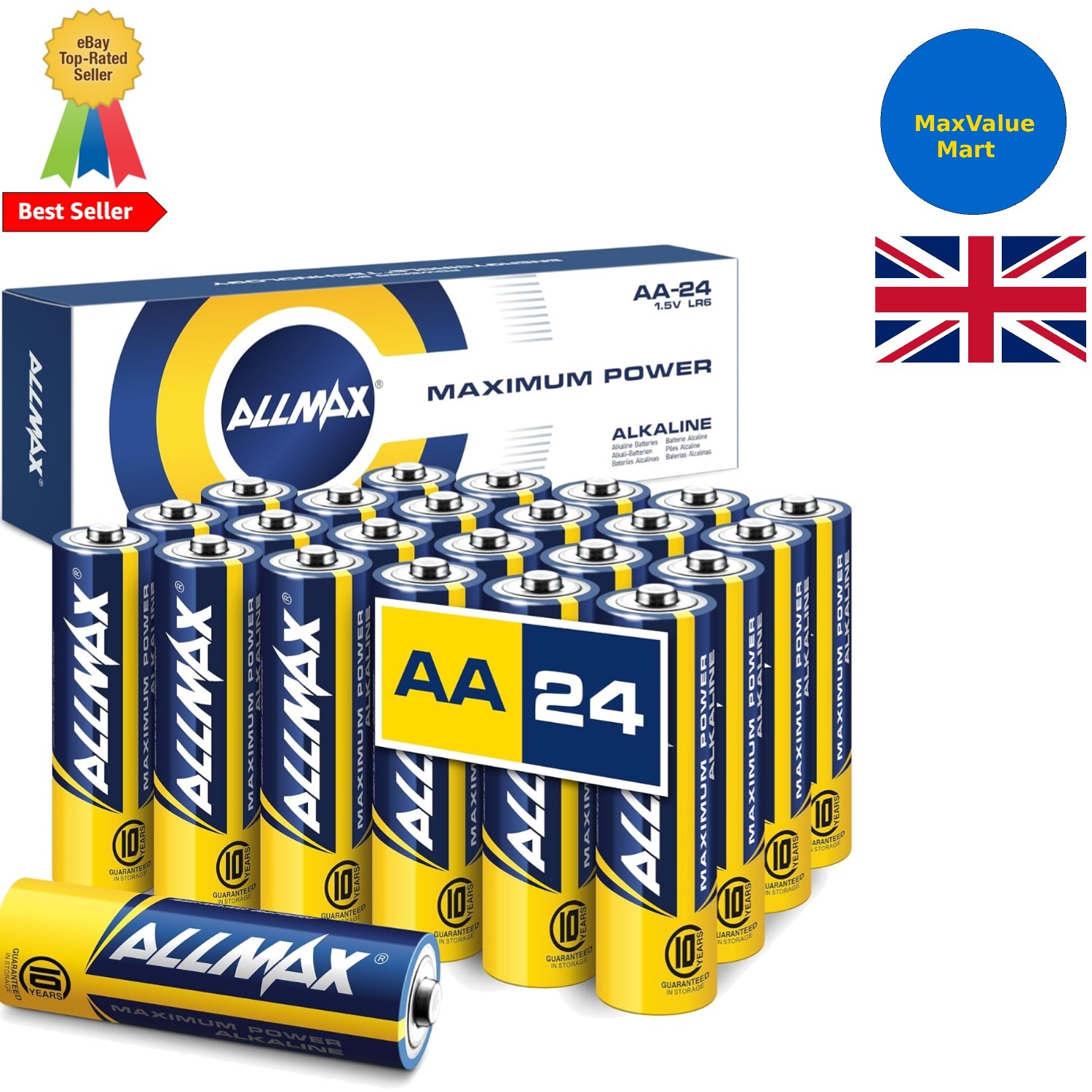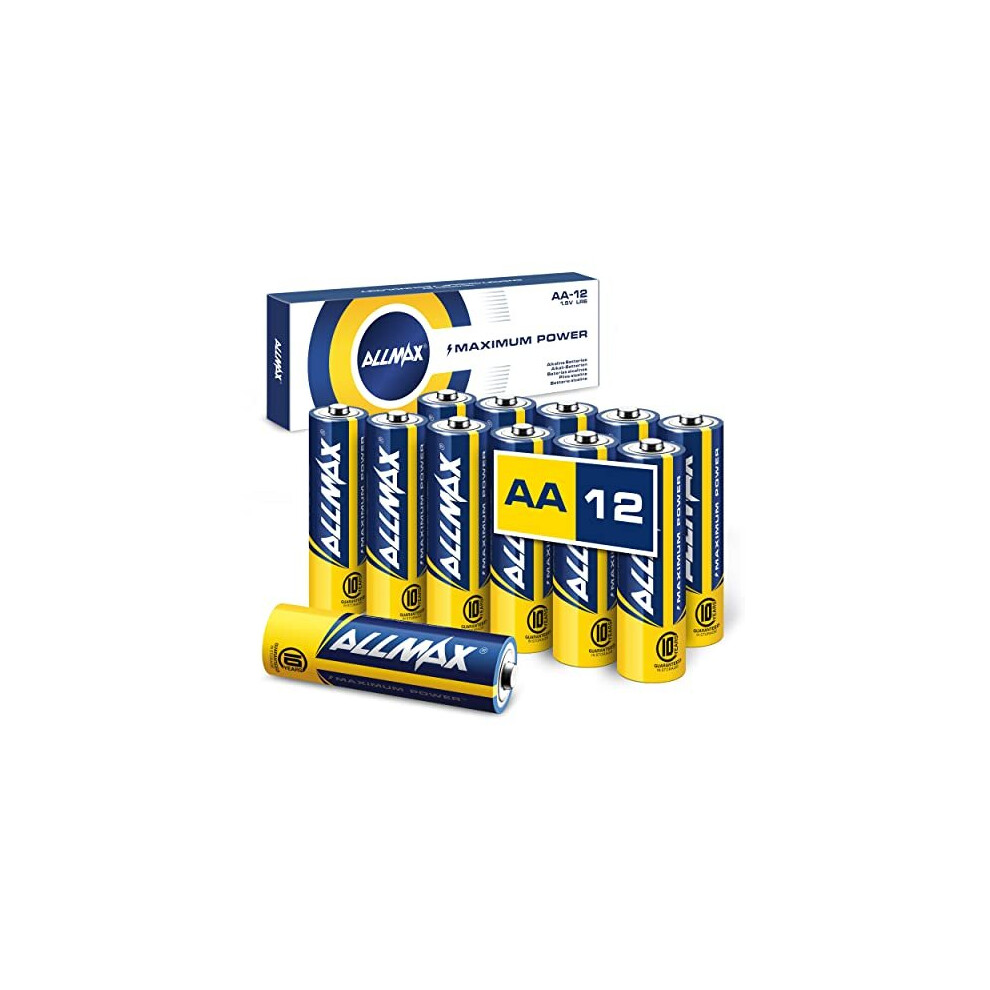 Allmax AA Maximum Power Alkaline Double A Batteries (12 Count) â Ultra Long-Lasting, 10-Year Shelf Life, Leakproof Design, 1.5V