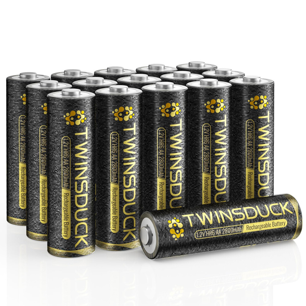 TWINSDUCK Rechargeable AA Batteries 2800mAh High Capacity Ni-MH 1.2V Pre-Charged Double a Batteries (16 Pack)