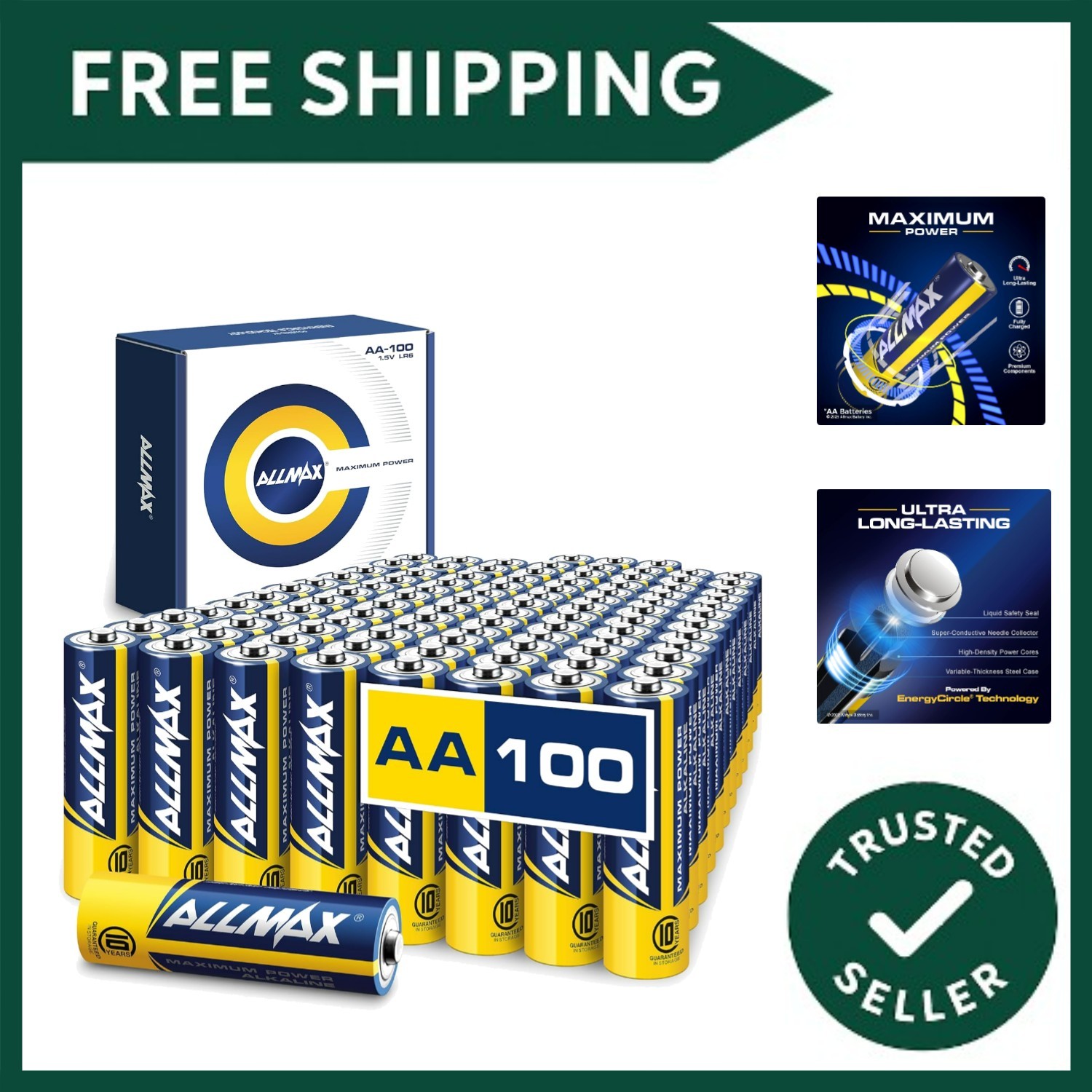 Allmax AA (LR6) Maximum Power Alkaline Double a Batteries (100 Count) – Ultra Lo