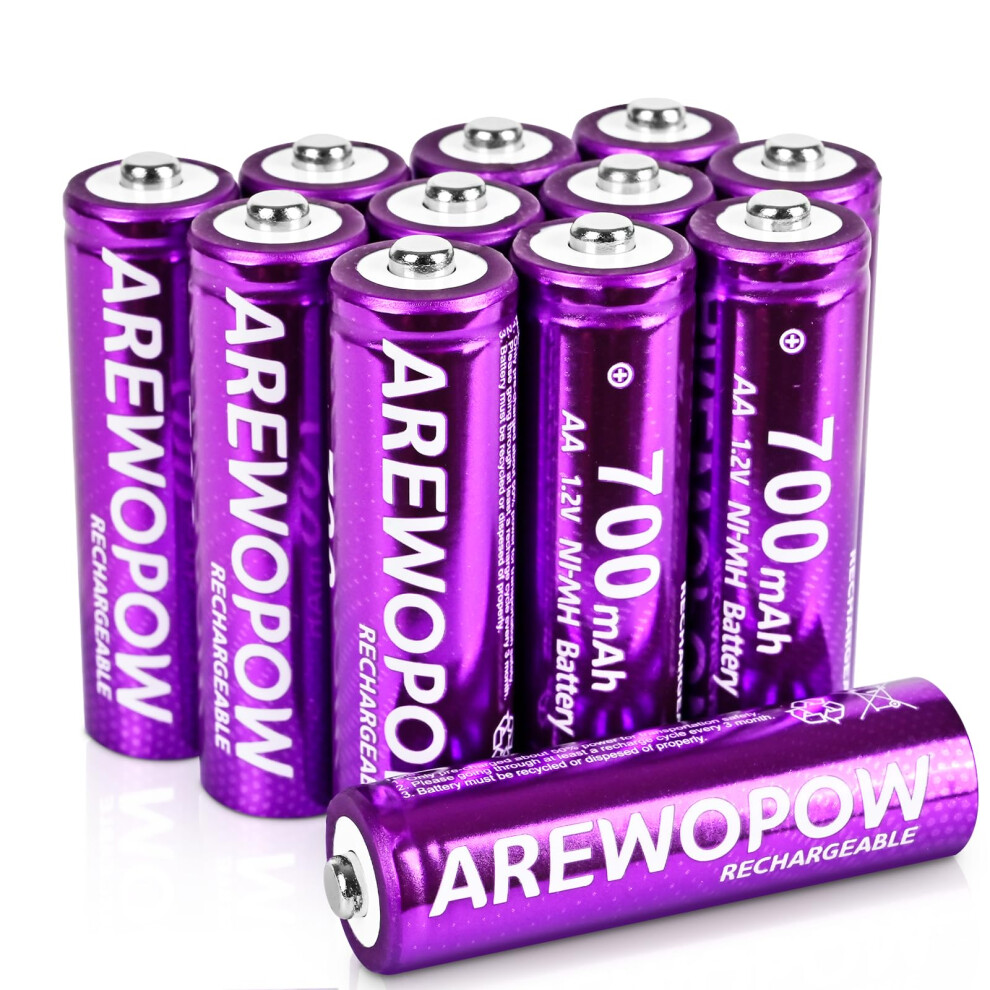 Ni-Mh Rechargeable AA Solar Batteries 1.2v 700mAh Pre Charged Double A Batteries for Solar Lights,Lawn Lamps,Other Everyday Electronic(Pack of 12)