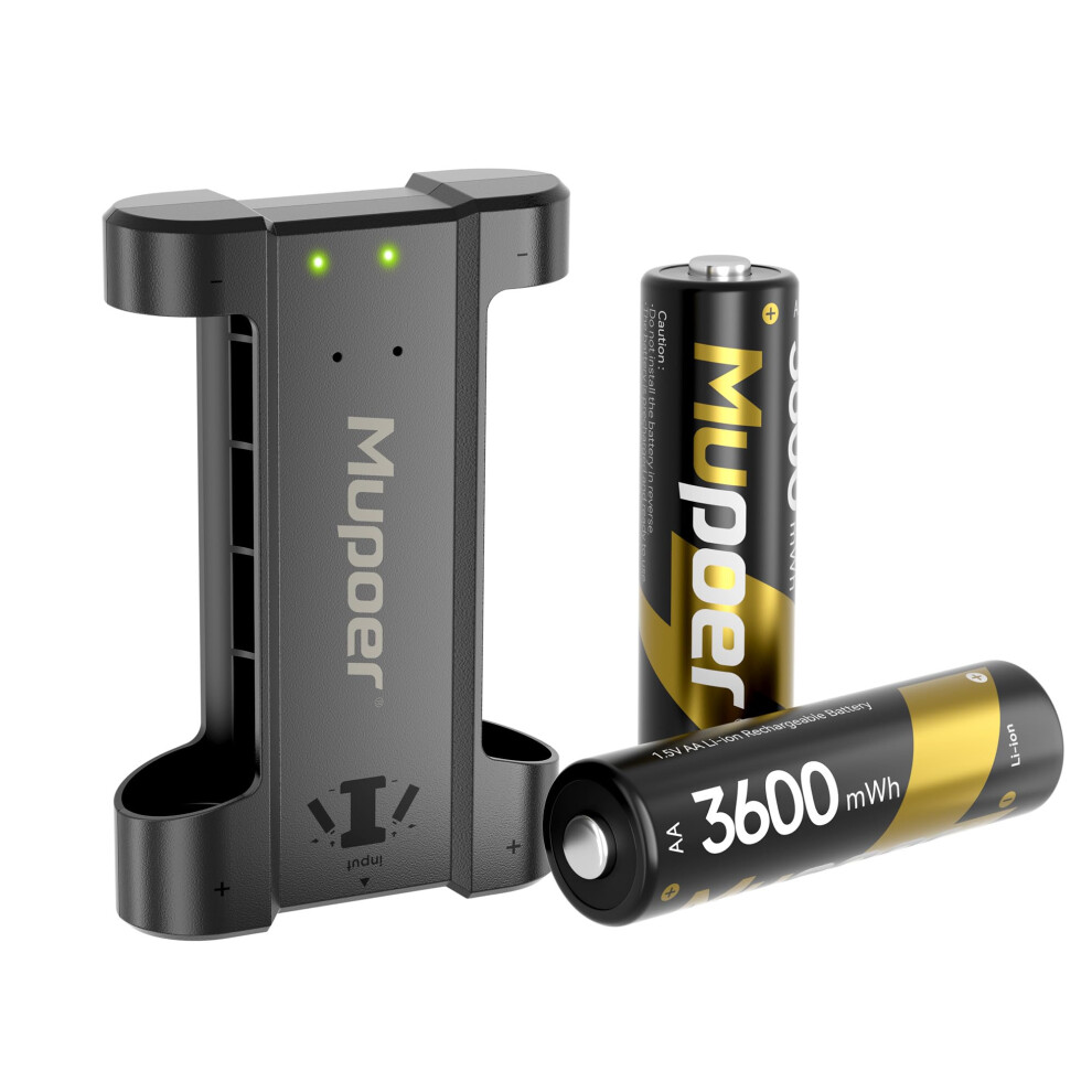 Rechargeable Battery AA with Charger,3600mWh Lithium Aa Battery 2 Count 1.5V,Double A Batteries High Capacity,Aa Lithium ion Batteries with Mini Char