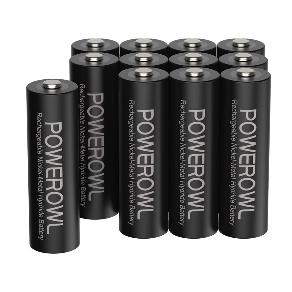 POWEROWL Rechargeable Battery AA (Pack of 12), 2800mAh High Capacity Double A Batteries 1.2V NiMH Low Self Discharge