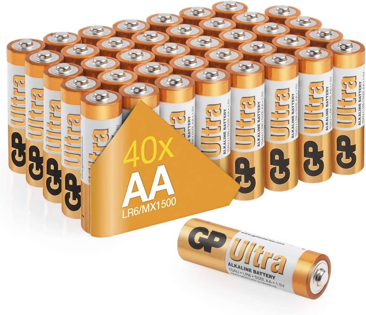 GP Ultra AA Batteries 40 Pack – 1.5V Alkaline Double a Batteries – 10-Year Shelf