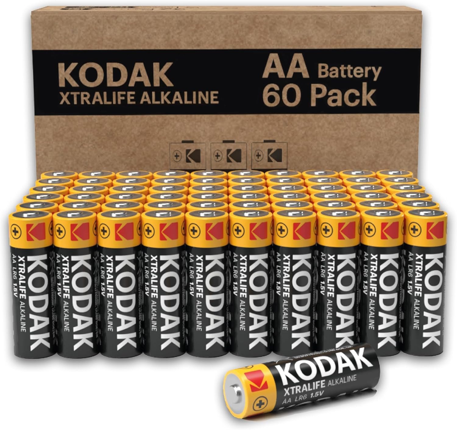 Kodak Xtralife 60-Pack AA Batteries, Double A Alkaline Battery Pack, 1.5V,