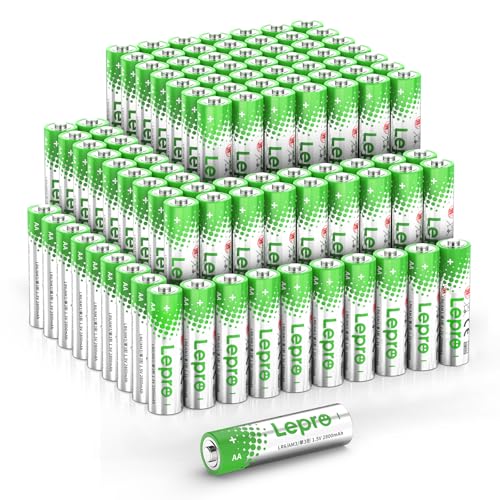 Lepro AA Batteries 100 Pack, 1.5 Volt Alkaline Double AA Battery with High Capacity, Anti-Leakage, Long Lasting Power, 2800mAh LR06 MN1500 Batteries AA for Clocks Remotes Mouse Torch