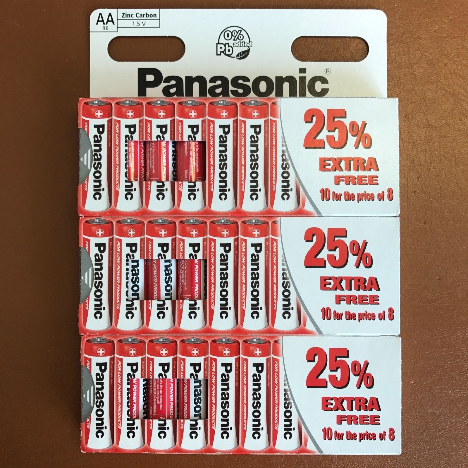 30x Panasonic AA Zinc Power Carbon Batteries - New Double A LR6 1.5V Expiry