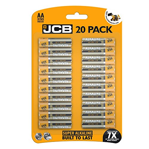 JCB AA Batteries 20 Pack - Super Alkaline Up to 7x Longer Power Life. Disposable Household Batteries AA/Double