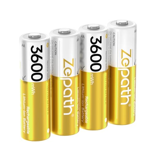 Zepath 4 x AA Li-ion Rechargeable Batteries, Lithium 3600mWh High Capacity aa Battery, Low Self-discharge 1.5V double a batteries, with Battery Protection Box