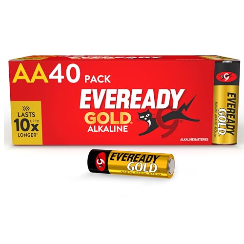 Eveready Gold by Energizer - AA Battery (40 Pack) - Bulk Double A Batteries - 1.5V Alkaline - Reliable Power For Every Day Devices - 100% Recyclable Plastic Free Packaging - 10 Year Shelf Life