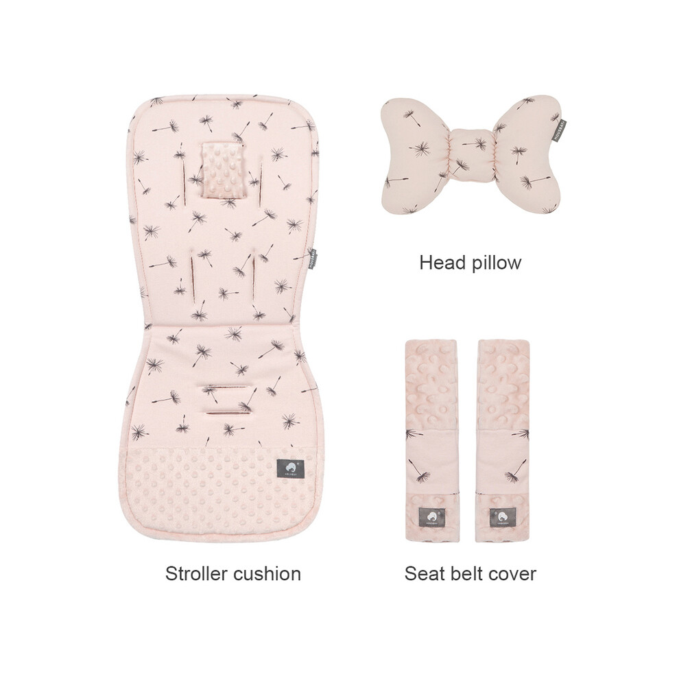 (dandelion) Stroller Cushion & Head Pillow & Seat Belt Cover 3Pcs/Set Universal Pram Pad Soft Cotton Double Sides Usable Baby Accessories