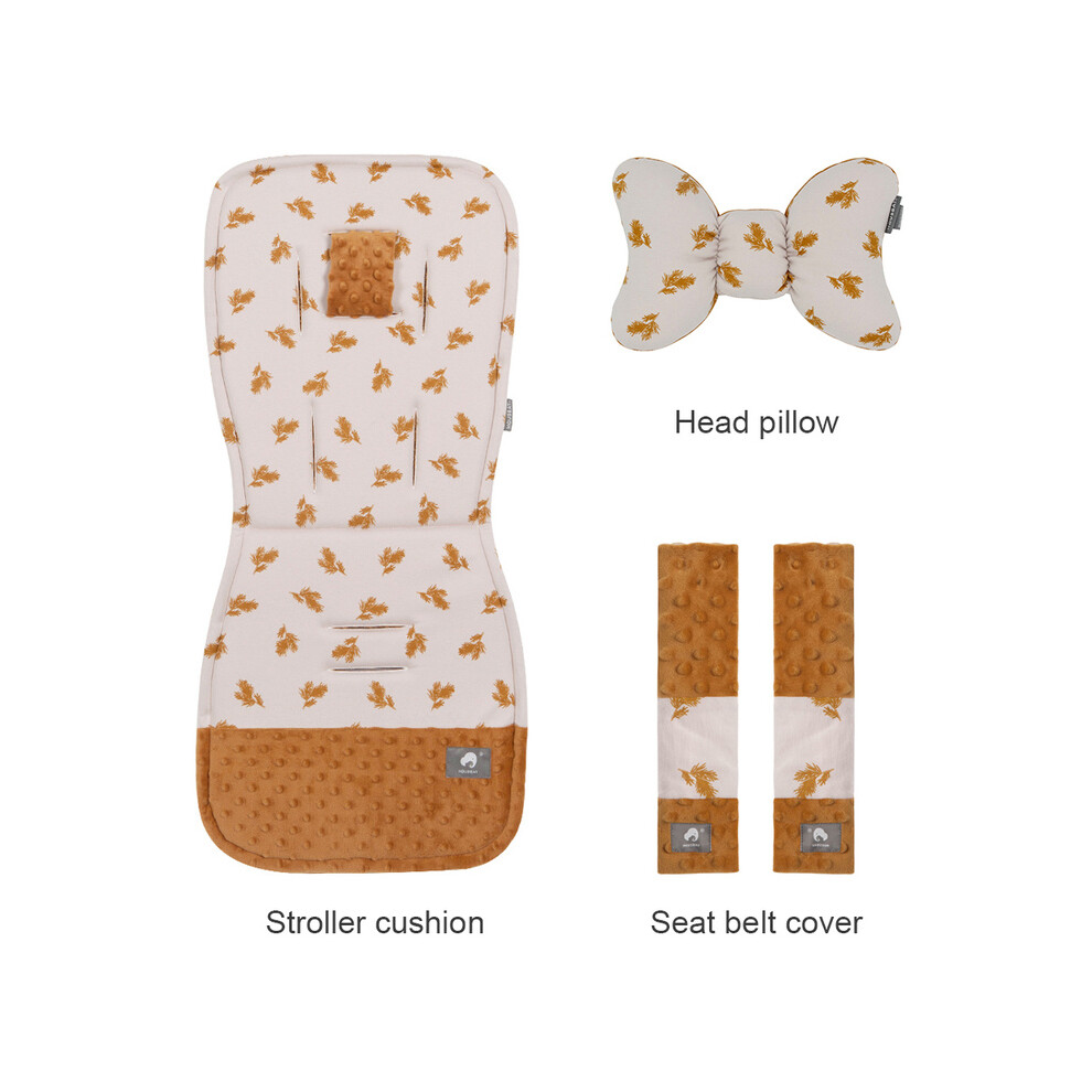 (ear of wheat) Stroller Cushion & Head Pillow & Seat Belt Cover 3Pcs/Set Universal Pram Pad Soft Cotton Double Sides Usable Baby Accessories