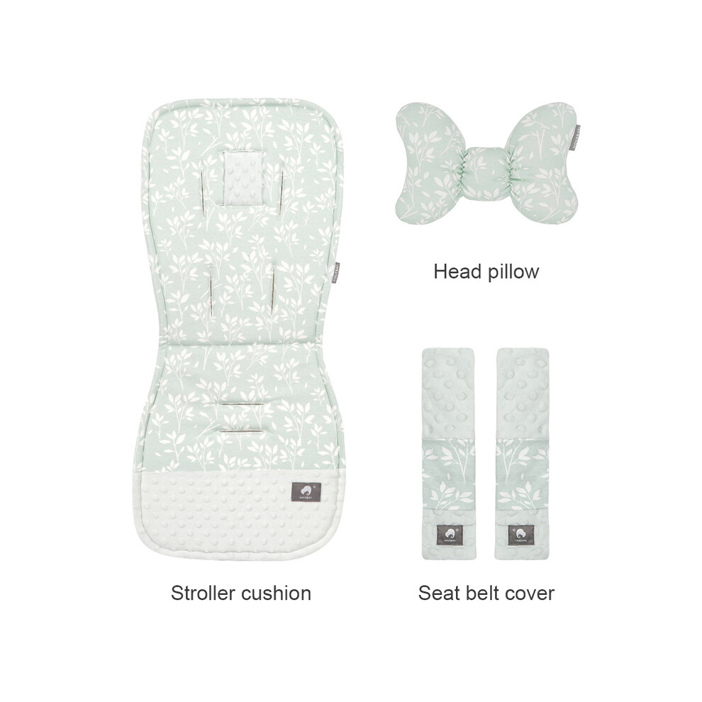 (grass) Stroller Cushion & Head Pillow & Seat Belt Cover 3Pcs/Set Universal Pram Pad Soft Cotton Double Sides Usable Baby Accessories
