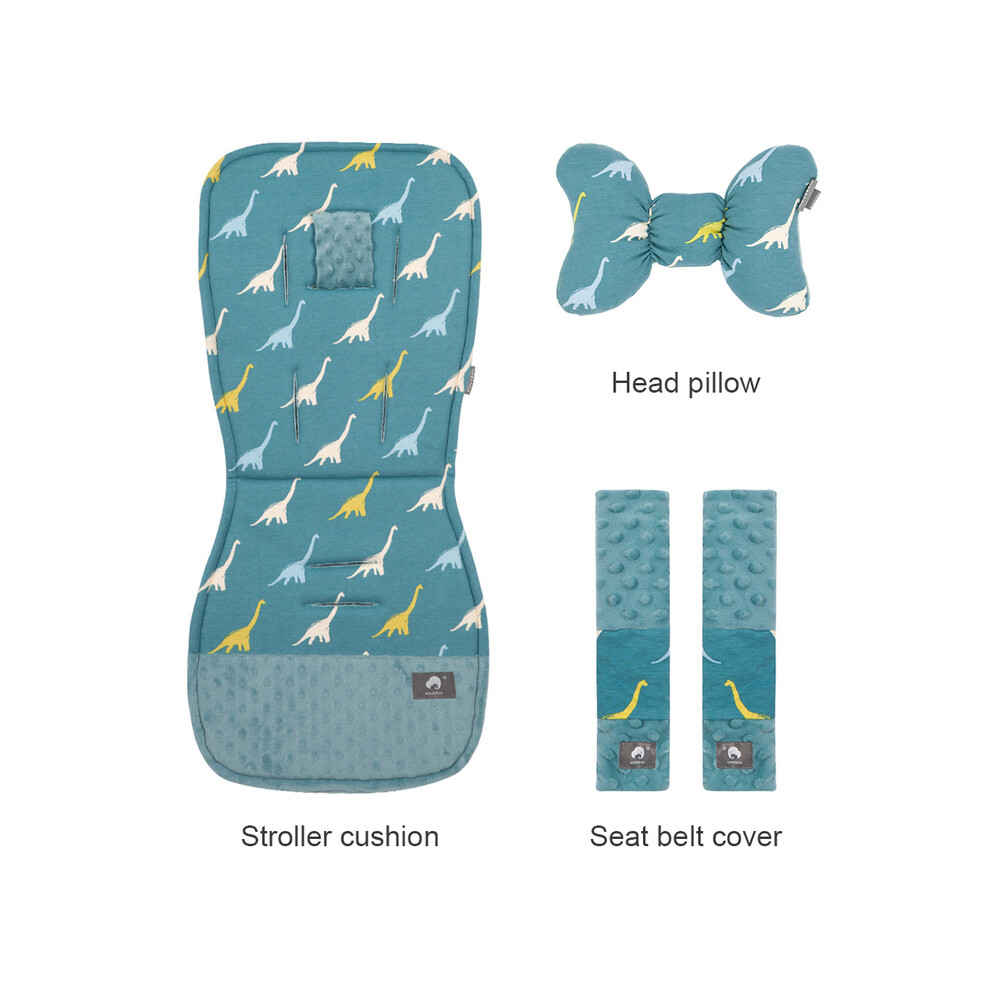 (dinosaur) Stroller Cushion & Head Pillow & Seat Belt Cover 3Pcs/Set Universal Pram Pad Soft Cotton Double Sides Usable Baby Accessories