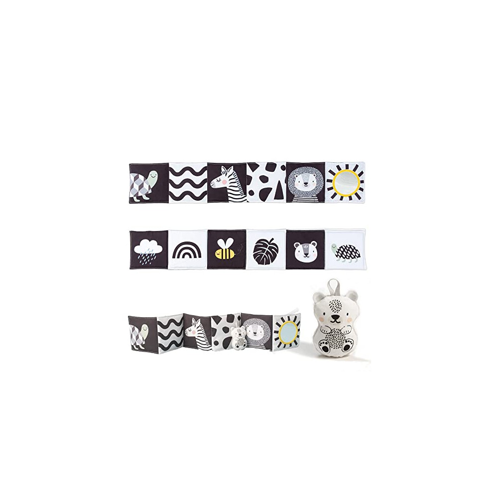 OKOOKO Pram Book, Baby Soft Book, Double-sided Tummy Time Sensory Book, Tummy Time Toy, Black and White High Contrast Sensory Toys, Montessori Sensory Toy, Fabric Book, Early Education for 0-6 Months