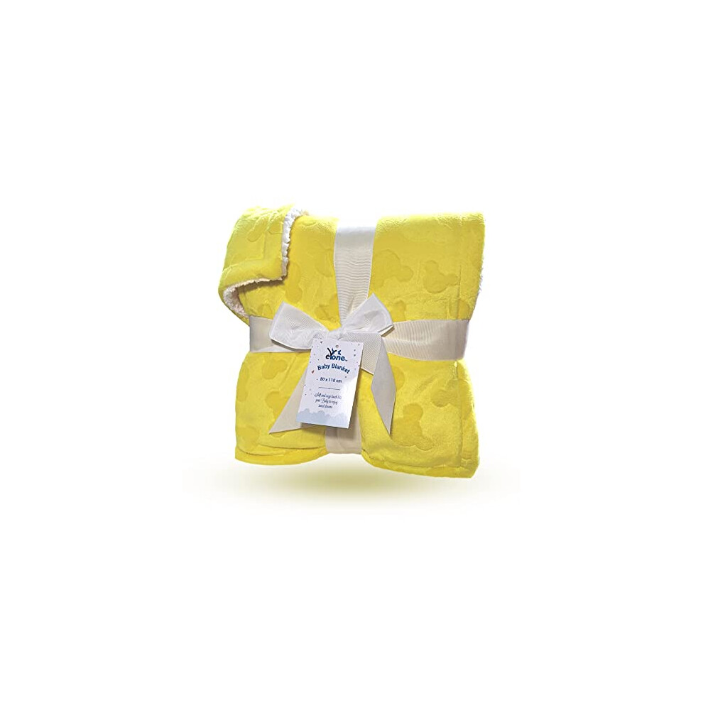 Large Receiving Sherpa Baby Blanket Double Layer Fleece for Nursery Cot and Pram (Yellow)