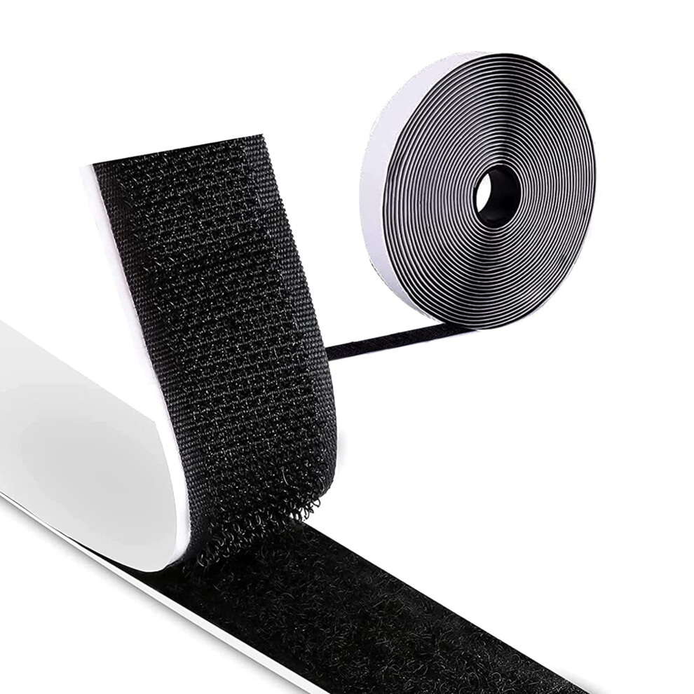 5 Metre Self Adhesive Hook And Loop Tape, Double Sided Sticky Back Fastening Tape, 20mm Wide, Black