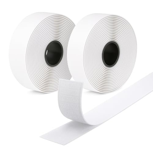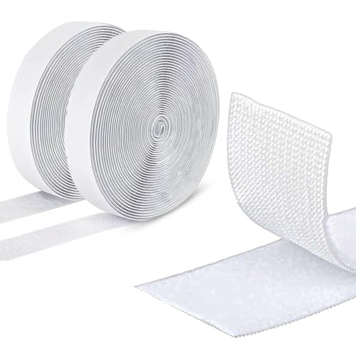 Fesoar Hook and Loop Strip Tape, Double Sided Self Adhesive Sticky Back Fastening Tape (20 mm x 8 m, White)