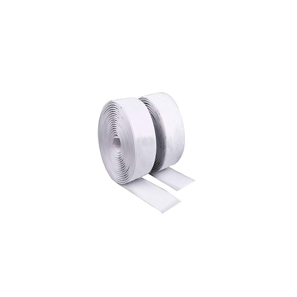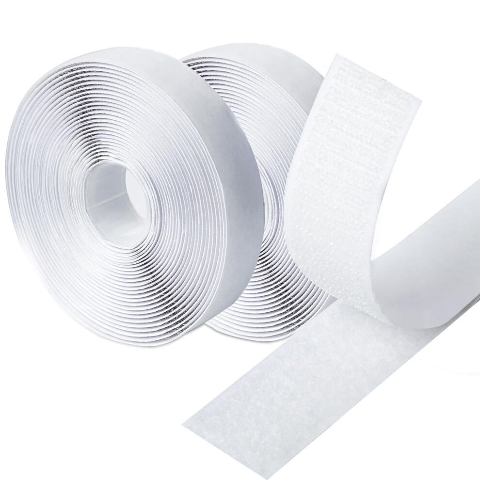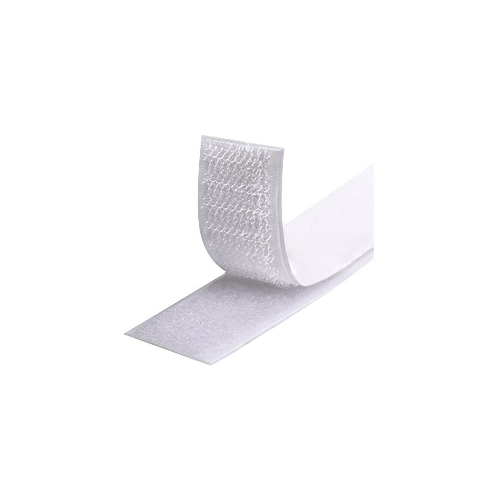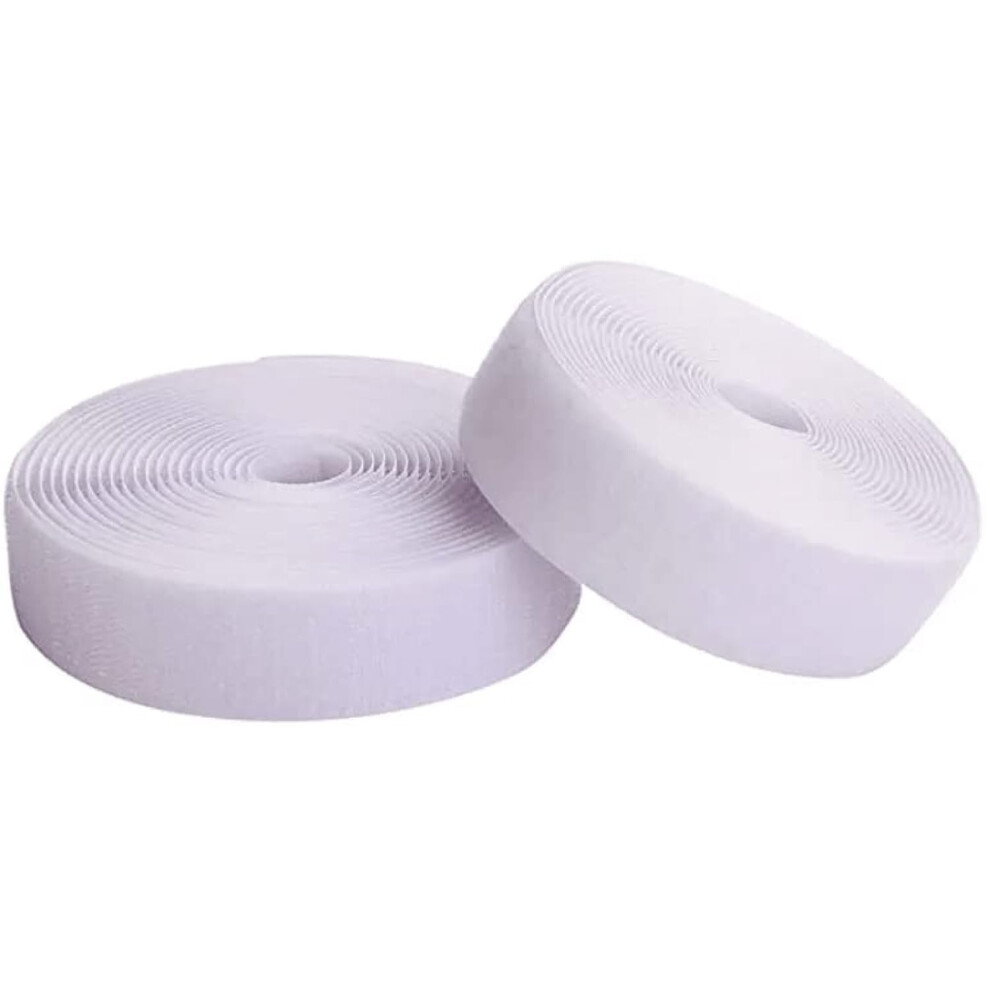 Self Adhesive Tape,5m Double Sided Sticky Heavy Duty Hook and Loop Tape, Strips for Fabric with Back Sticky Glue 25mm White