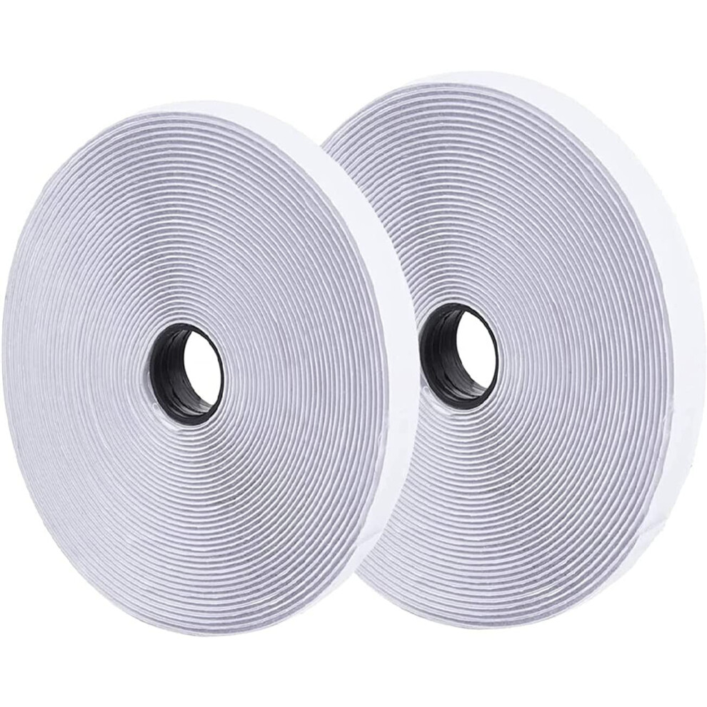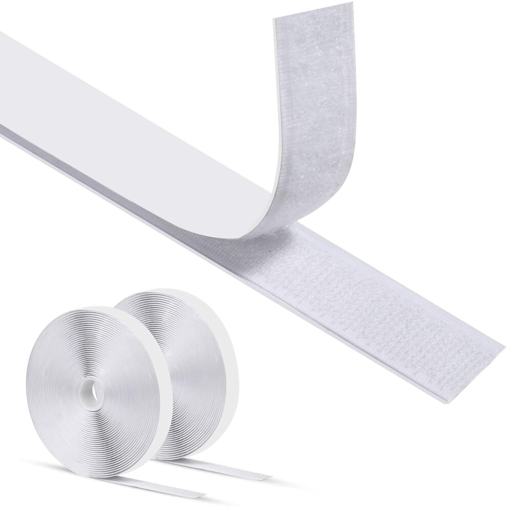 12M Self Adhesive Hook and Loop Tape, Extra Strong Double-Sided Sticky Tape Back Fastening Tape,20 mm Width, White