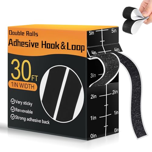 UPXDUMI Hook and Loop Tape 30mm x 5m Multipurpose Strong Self Adhesive Strips Heavy Duty Double Sided Sticky Back Roll Suitable for Home Carpet Sofa Picture Hanging Fabric Industrial Outdoor Black