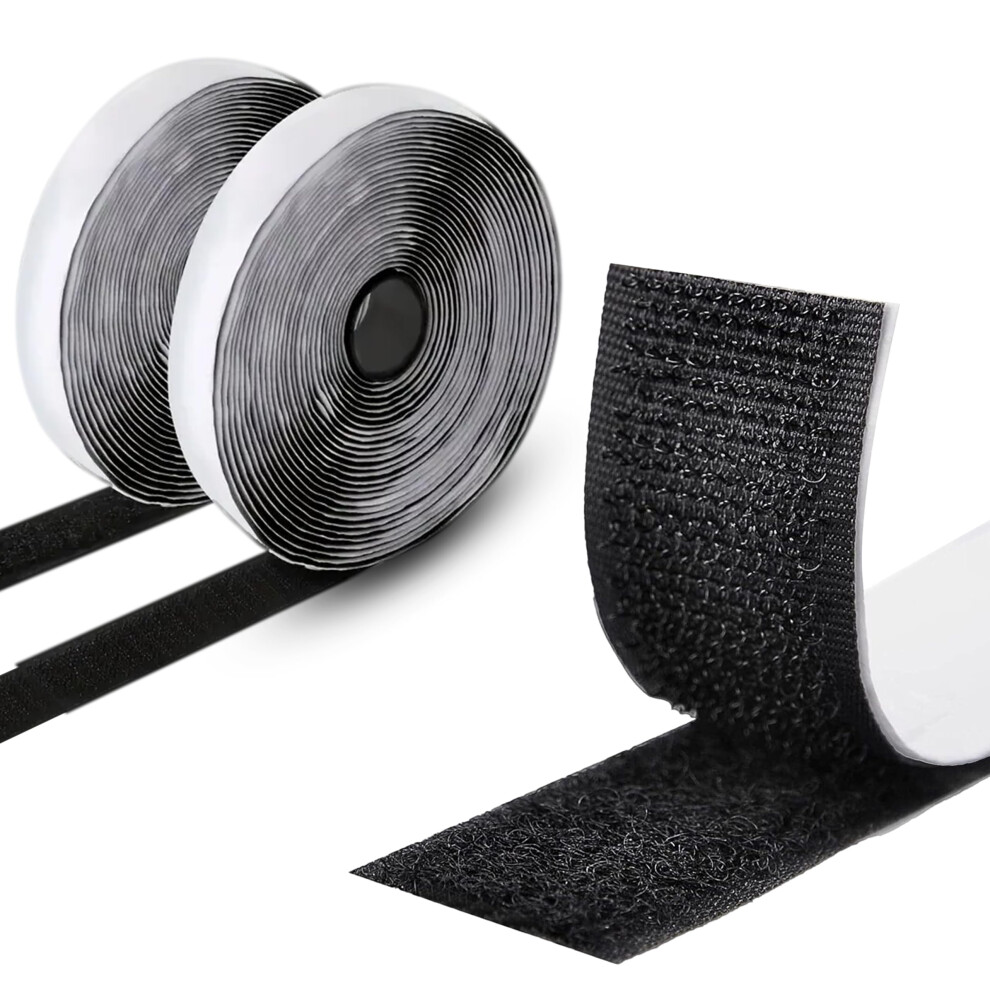 2M Self Adhesive Hook and Loop Tape, Extra Strong Double-Sided Sticky Tape Back Fastening Tape, 20 mm Width, Black