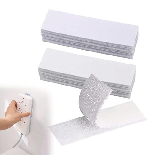 IRYNA 20Pcs Double Sided Sticky Pads Heavy Duty White Hook and Loop Strip Tape Self Adhesive Sticky Back Fastening Tape for Walls Floor Plastics Glasses Metals(3x10cm)