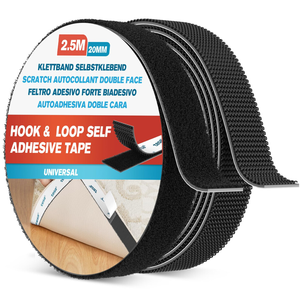 Emitever Hook and Loop Tape Heavy Duty, Multipurpose Strong Self Adhesive Double Sided Strip Sticky Back Mounting Tape, Black (20mm x 2.5m)