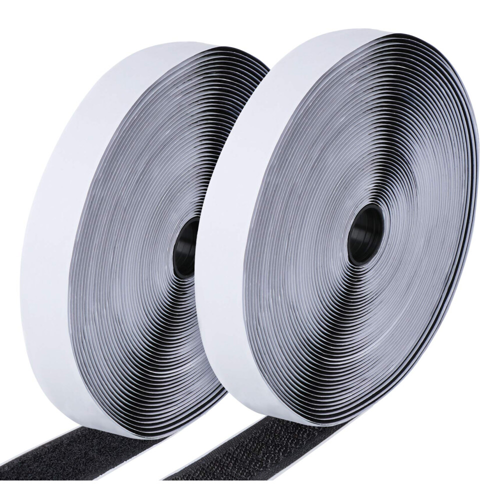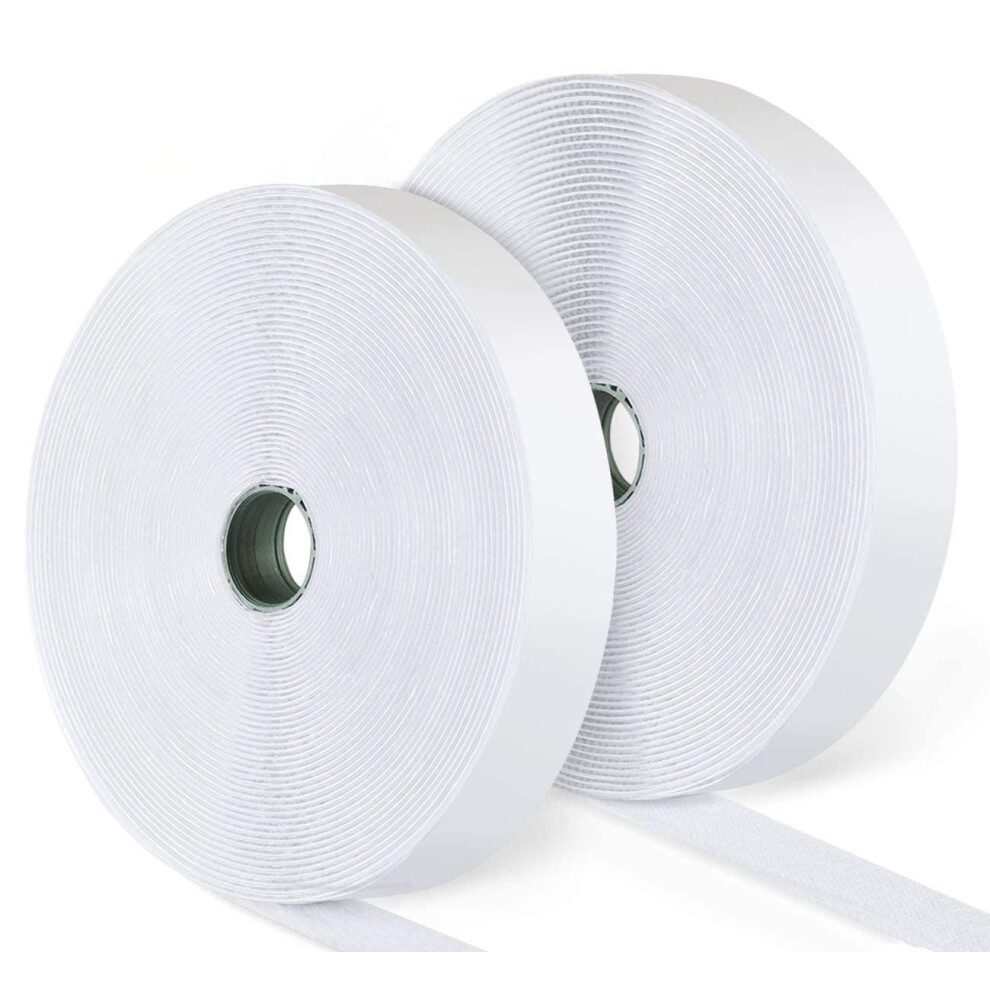 25M x 20mm Double Sided Self-Adhesive Hook and Loop Tape, Sticky Back Velcro Strips, Adhesive Hook & Loop Fastener Roll