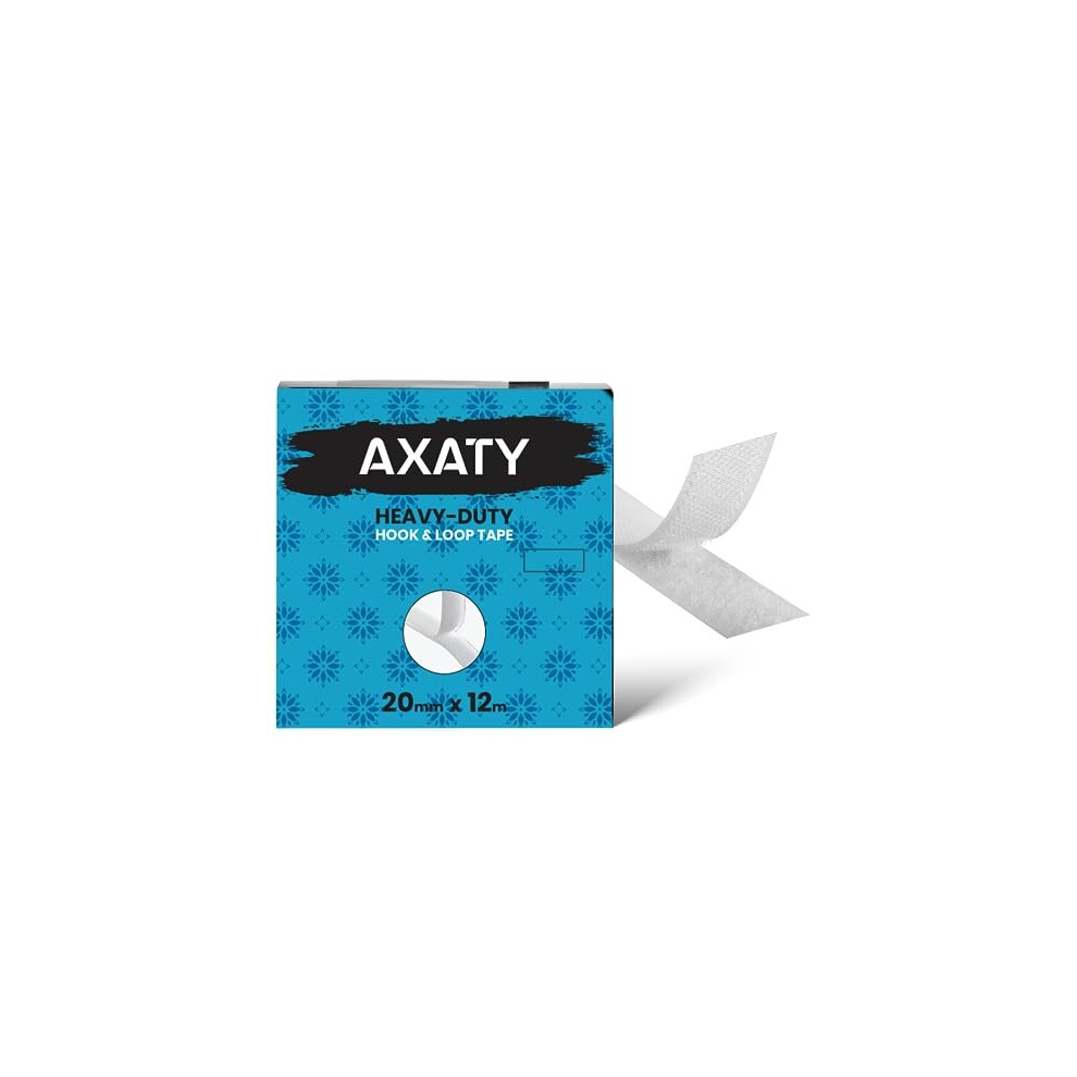 AXATY (20mm x 2.5m) Hook and Loop Tape Self Adhesive â Double Sided, Heavy Duty, Water Resistant - Nylon Strong Sticky Back Fastening Tape for Home,