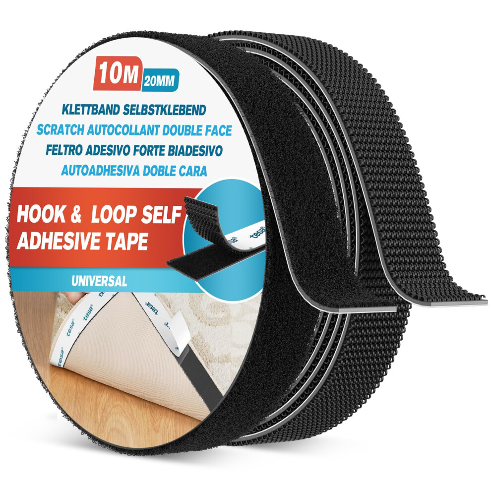 Emitever Hook and Loop Tape Heavy Duty, Multipurpose Strong Self Adhesive Double Sided Strip Sticky Back Mounting Tape, Black (20mm x 10m)