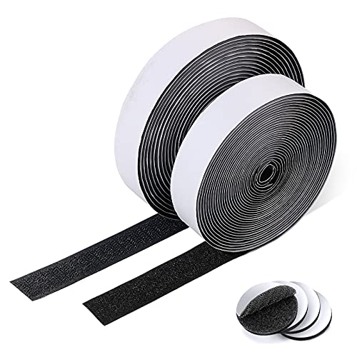 Fesoar Hook and Loop Strip Tape, Double Sided Self Adhesive Sticky Back Fastening Tape (20 mm x 8 m, Black)