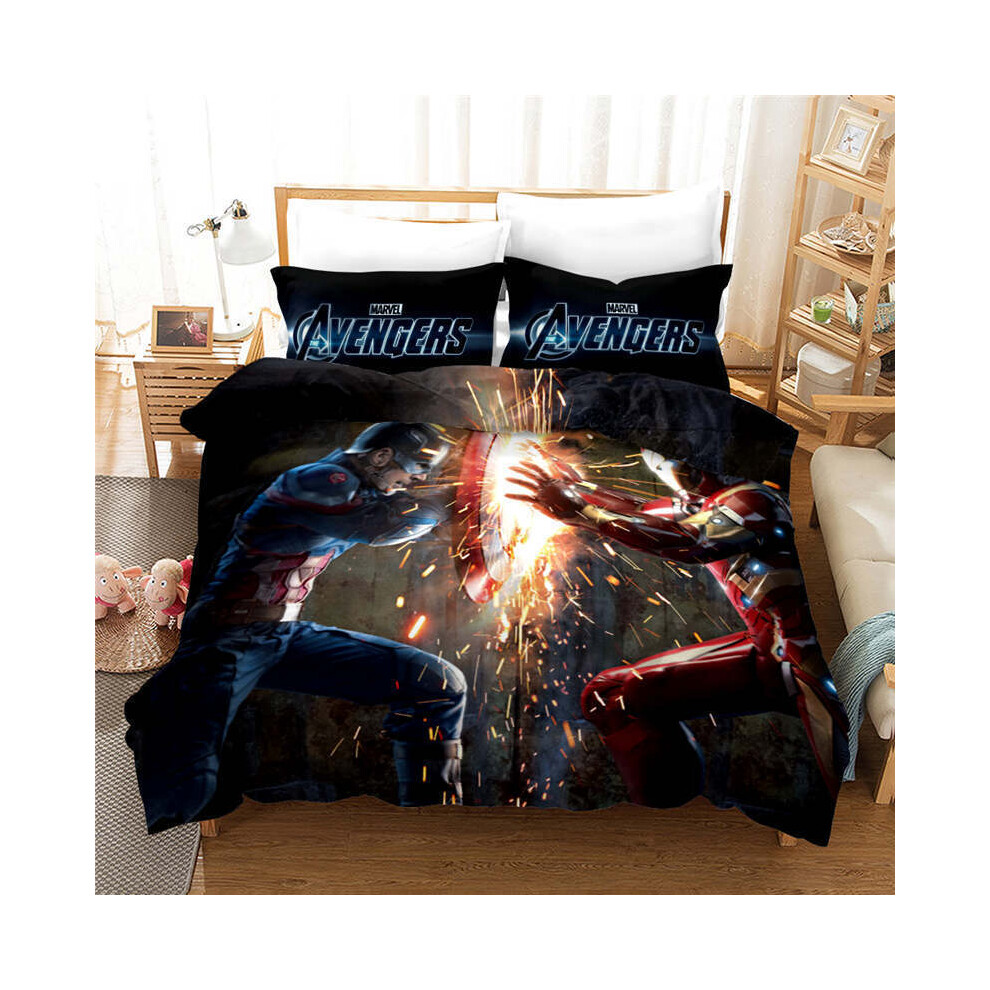 (Style 1, 140*200 Two-piece Set) New digital printed three-piece set Marvel double bed quilt covers hairy sheet bedding set
