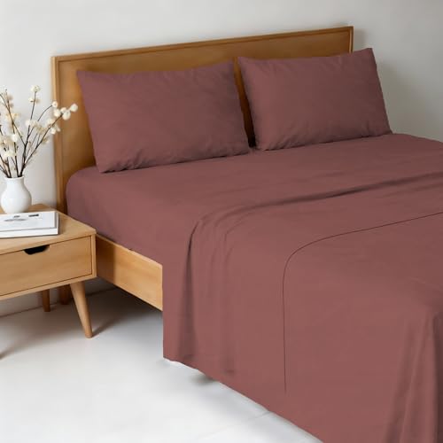 EXTRA DEEP FITTED BED SHEETS NON IRON LUXURY PERCALE COTTON RICH VALANCE FITTED SHEET PLEATED BRUSHED COTTON BEDDING DOUBLE BED SET FLAT SHEET (King, Chocolate)