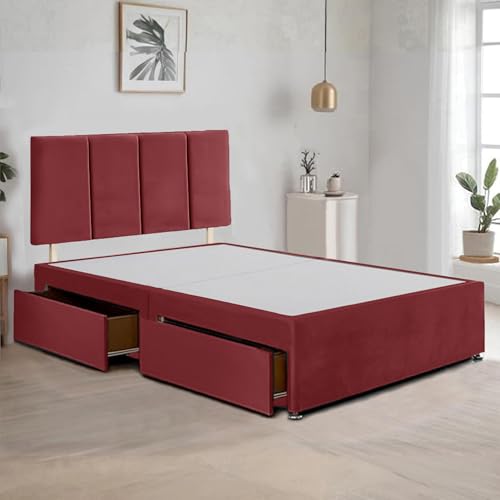 ComfoRest - Contemporary 4FT Small Double Divan Bed with 2 Drawers | Durable Frame for Compact Rooms | Versatile Design for Comfortable Spaces (Red Plush)