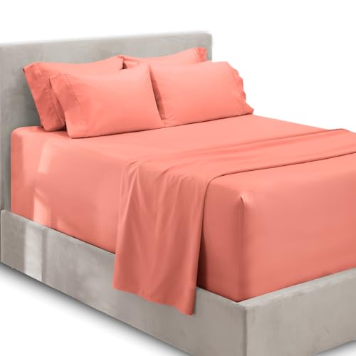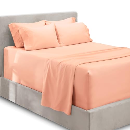 Hearth & Harbor Bed Sheets, Luxury Soft 6 Piece Bed Sheet Set Extra Deep Pocket Fitted Sheets Fits Mattress up to 21", Double Brushed Bedding Sheets & Pillowcases, King Size, Peach