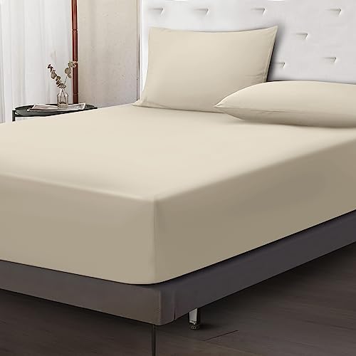 Moonlight Bedding Double Fitted Sheet - 25cm Deep Pockets Ultra Soft Brushed Microfiber Beige Double Fitted Bed Sheets Breathable, Fade Resistant Easy Care Double Bed Sheet (137 x 190 Cm)
