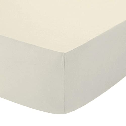 British Home Bedding - Plain Polycotton Percale Fitted Bed Sheets - Shrinkage and Fade resistant with a soft luxurious finish (Cream, Double)