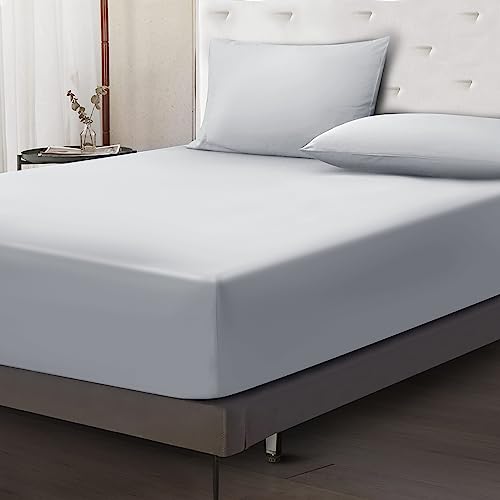 Moonlight Bedding Double Fitted Sheet 40 Cm Extra Deep Pocket Grey Bed Sheets 16 inch Ultra Soft Bottom Sheet Brushed Microfiber Breathable Shrinkage and Fade Resistant