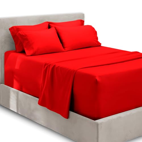 Hearth & Harbor Fits Mattress up to 21", Double Brushed Bedding Sheets & Pillowcases, Microfiber, Cherry Red, Queen