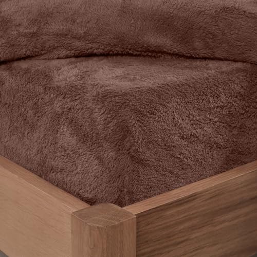 Brentfords Fitted Bed Sheets Double Teddy Fleece, Fluffy Bedding Double Bed Sheets Fitted Easy Care Ultra Soft Fade Resistant Double Thermal Bedding, Chocolate Brown