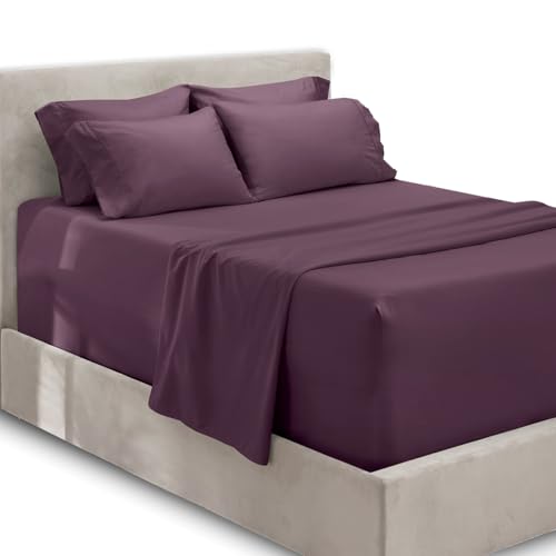 Hearth & Harbor Fits Mattress up to 21", Double Brushed Bedding Sheets & Pillowcases, Microfiber, Eggplant, Queen